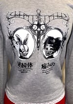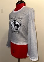 long sleeve cutsew made from grey cotton knit jersey & white lace, featuring original graphics by @crucifx0n.me on IG.