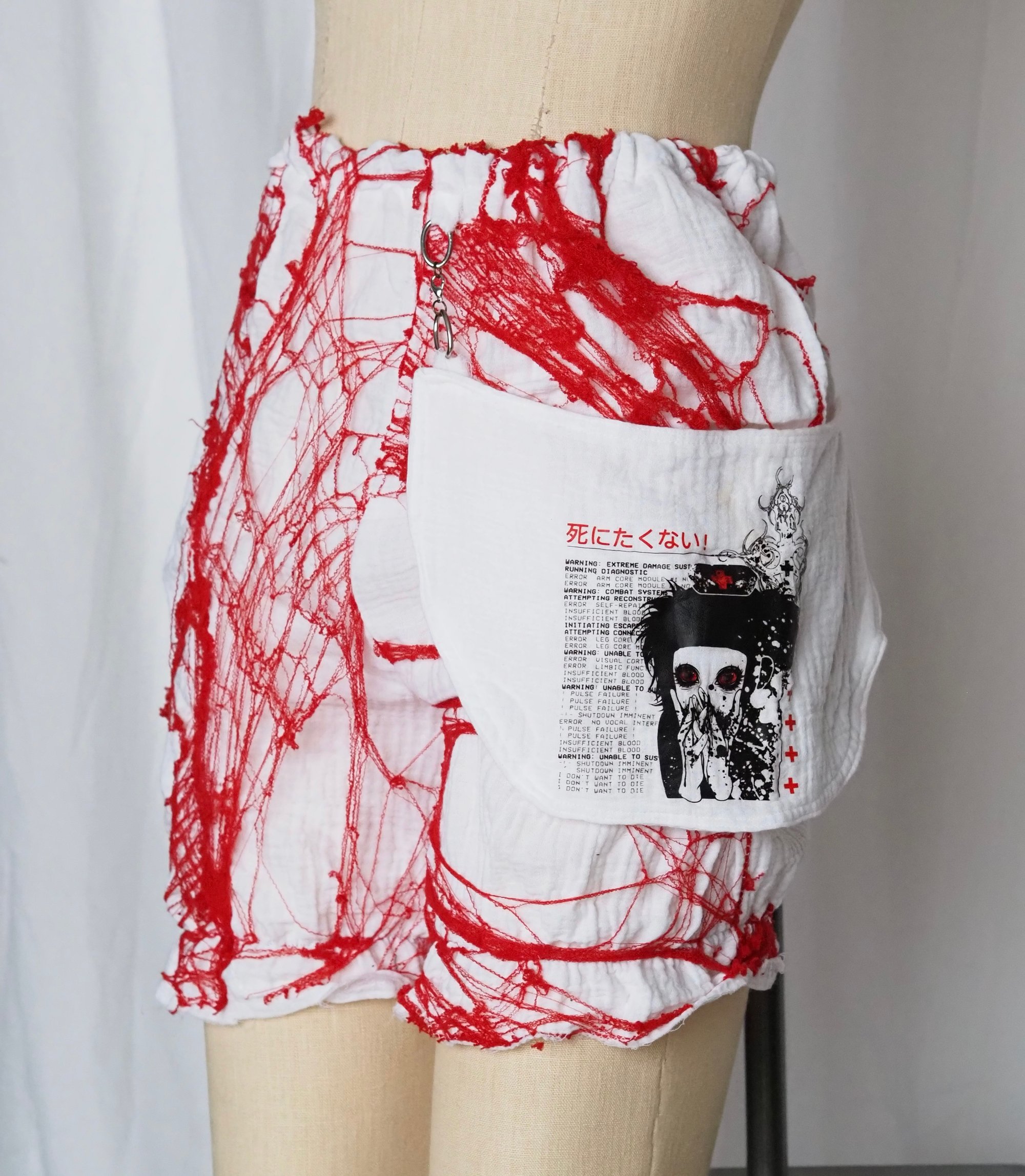 cotton gauze bloomers w/ distressed knit jersey in white x red from the sample collection of "angel autopsy," in collaboration with art by @crucifx0n.me