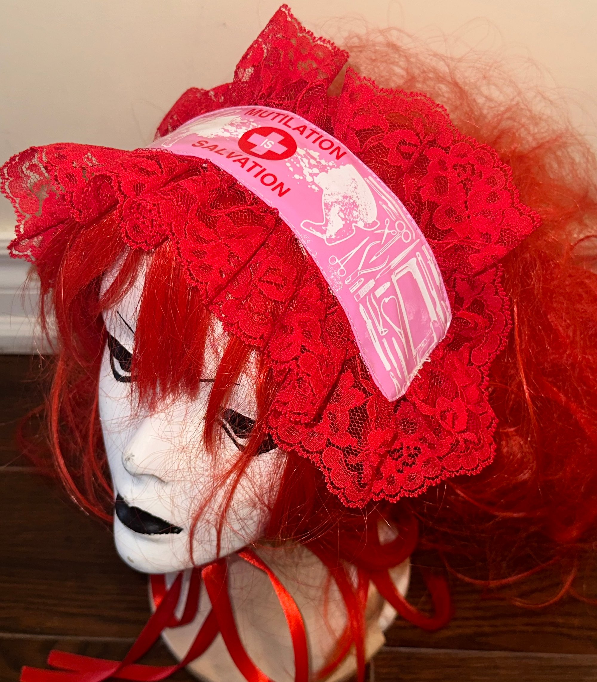 angel autopsy “mutilation is salvation” headdress (pink x red)