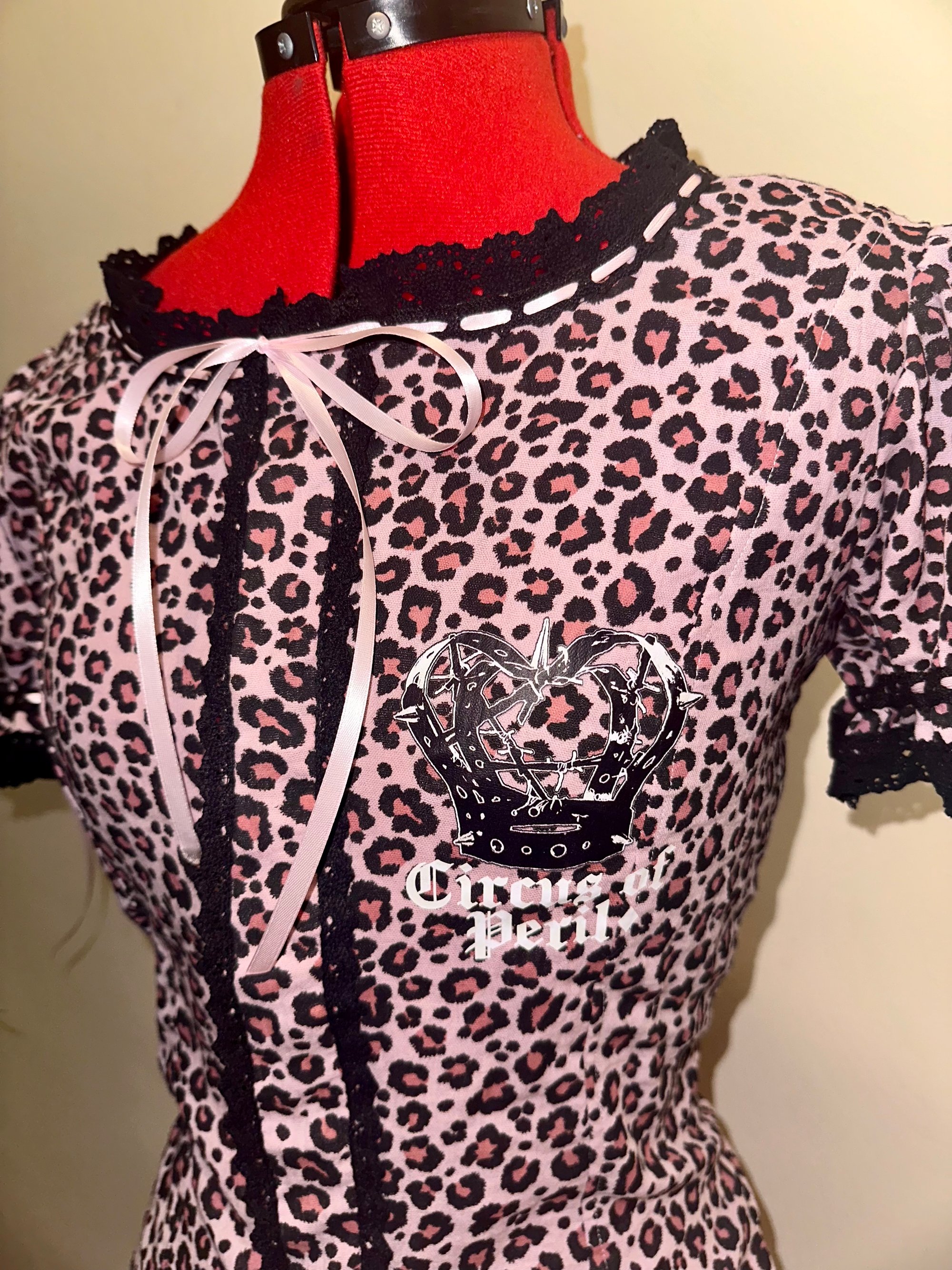 light pink leopard logo print blouse
