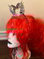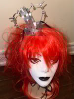 metal mini crown with screws, includes leather suede string to tie underneath.