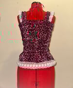 pink leopard print velvet shirring camisole featuring white laces, hot pink/white ribbon, and original logo design.
