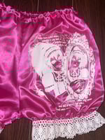 hot pink satin bloomers with white lace, featuring original "arachnid" print design.