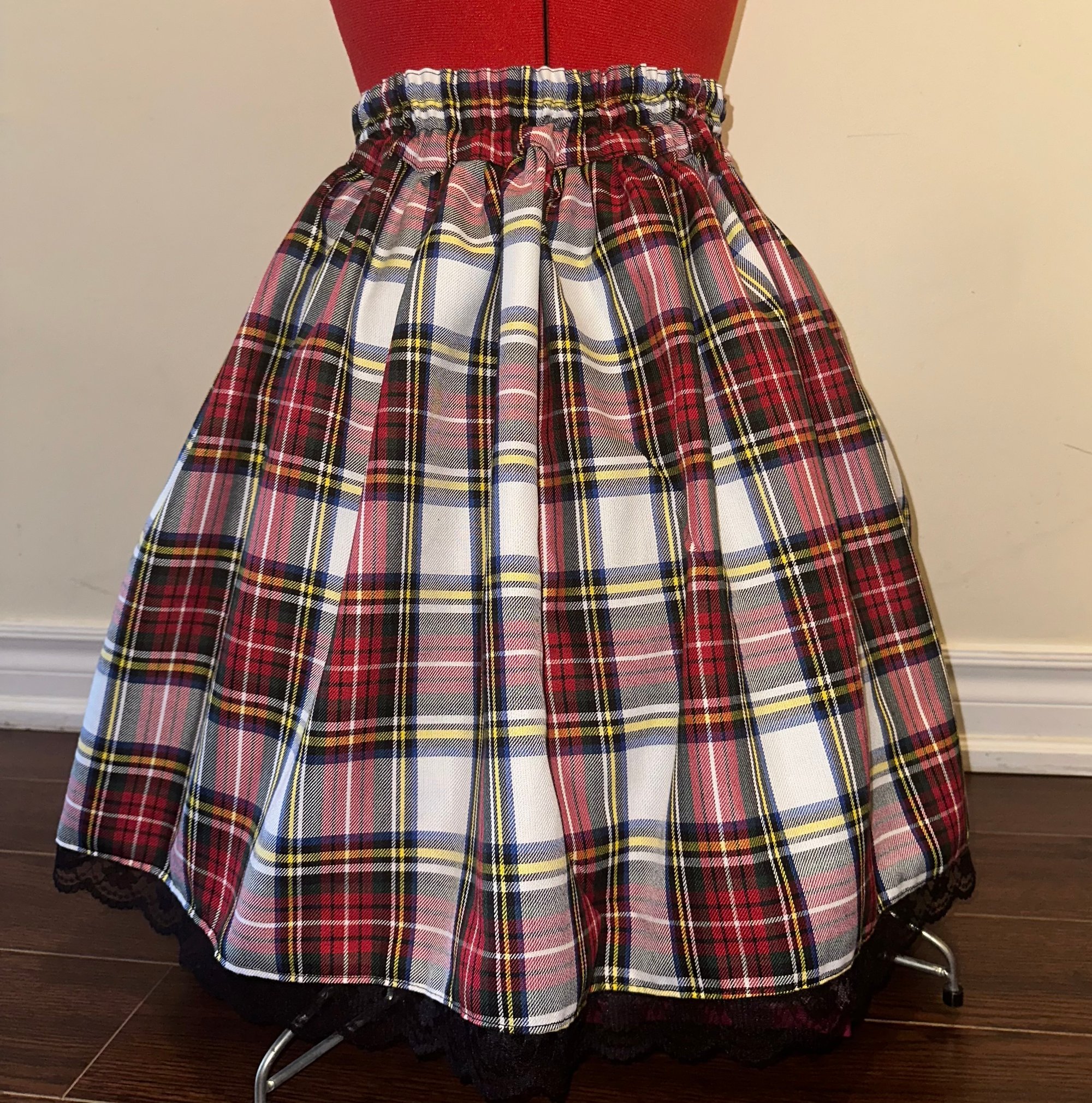 white tartan skull print skirt